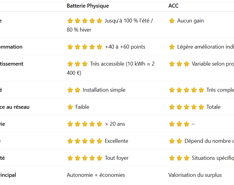 🥇 1. La Batterie Physique — Le choix de l’autonomie et de la rentabilité réelle